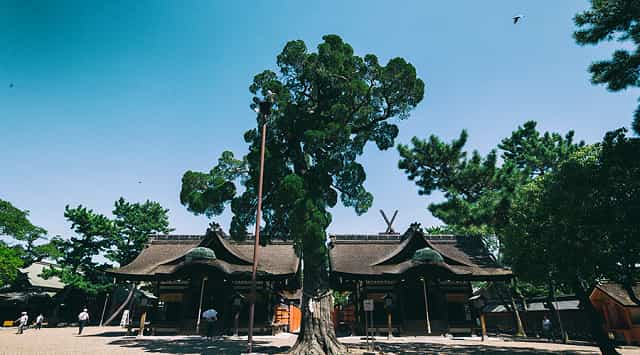 オフィス街である御堂筋通りに面した「難波神社」。市内最古といわれる樹齢400年の御神木があり、触れるとパワーが貰えると人気のスポットでもあります。心斎橋PARCOや大丸、オーパなどの商業施設も近いので、その利便性から初詣にも多くの人が訪れます。初詣に合わせて買い物もしたい人にぴったりの神社ですよ。